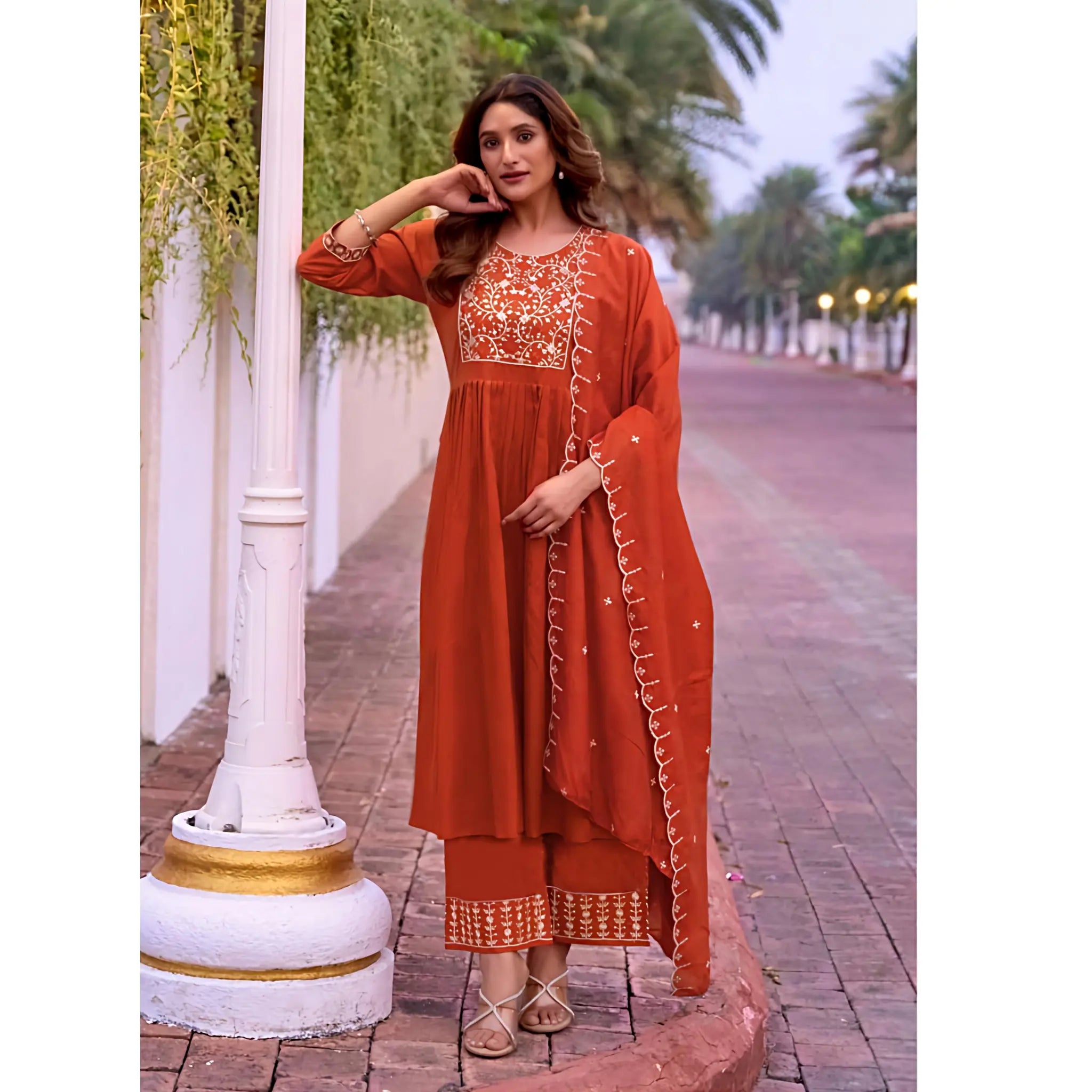 Italian Viscose Masterpiece_ Embroidered Kurta, Plazzo & Chanderi Dupatta