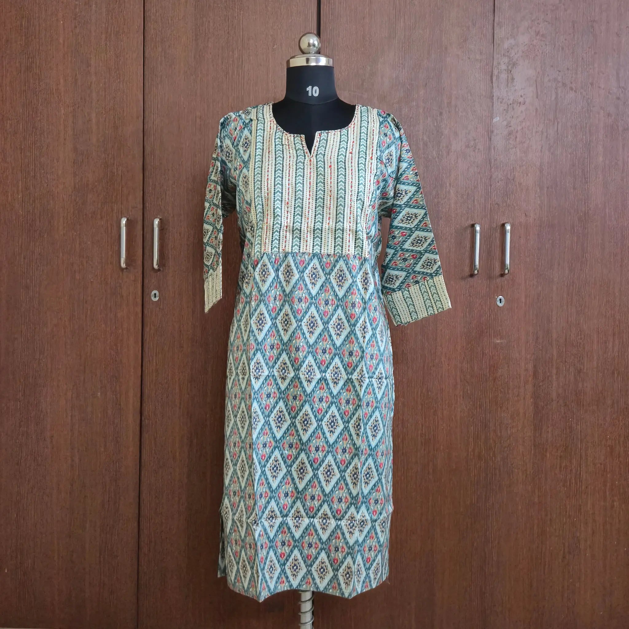 Women’s Designer Rayon Kurti with Foil Print & Elegant Neck Embroidery - Sabnam1002
